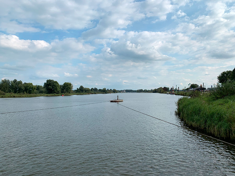 Sonntag ging Matthies nach Pont, und Melli und ich machten einen schönen Ausflug nach Arcen in Holland. Nachdem wir nach einigem Rumgekurve endlich einen Parkplatz gefunden hatten – es war sehr viel los dort – liefen wir an der Maas entlang zur Fähre.